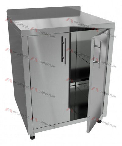 Столешница и двери изготолены из шлифованной нержавеющей стали AISI 430. Каркас - сварной изготовлен из гнутого листового металла толщиной 0,7 мм, нижней и промежуточной полками, полностью из нержавеющей стали AISI 430. Стойки оснащены регулируемыми по высоте пластиковыми опорами. Задняя стенка - оцинкованная сталь.