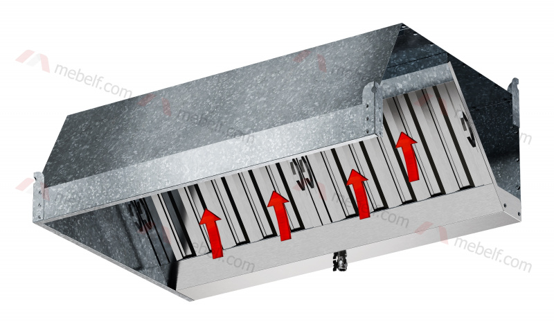 Отличительной особенностью зонта является его задняя стенка из оцинкованной стали, которая обеспечивает дополнительную прочность и устойчивость к коррозии. Встраиваемый зонт легко устанавливается в любом помещении благодаря своим компактным габаритам.
